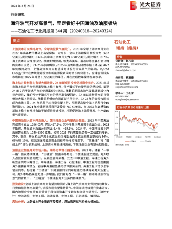 【光大证券】【20240324】20240324-光大证券-石油化工行业周报第344期:海洋油气开发高景气,坚定看好中国海油及油服板块-27页 行业研究
