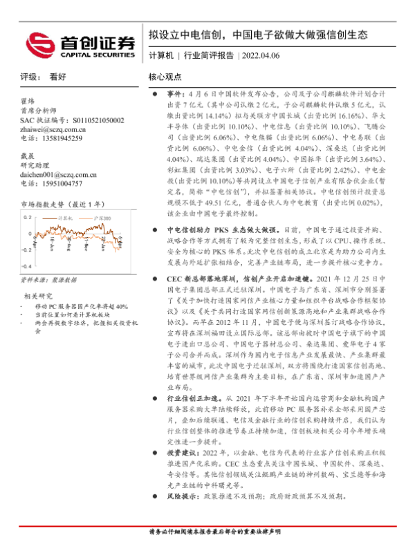 【首创证券】【20220406】拟设立中电信创,中国电子欲做大做强信创生态-2页 行业研究