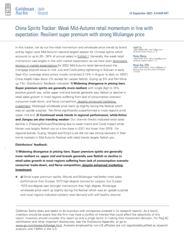 【Goldman Sachs(Asia) L.L.C.&Beijing Gao Hua Securities Company Limited】【20220913】in line with expectation. Resilient super premium with strong Wuliangye-16页 行业研究