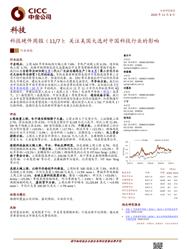 【中金公司】【20201107】科技硬件周报:关注美国大选对中国科技行业的影响-13页 行业研究