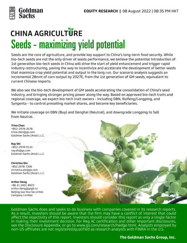 【Goldman Sachs】【20220808】maximizing yield potential; initiate Dabeinong at Buy, Denghai at Neutral-87页 行业研究