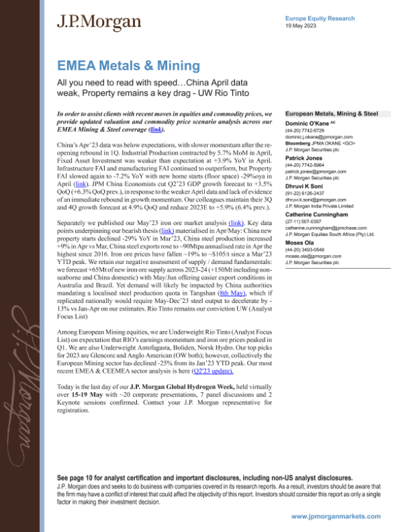 【J.P. Morgan】【20230519】JPMorgan-EMEA Metals & Mining All you need to read with speed…China-14页 行业研究