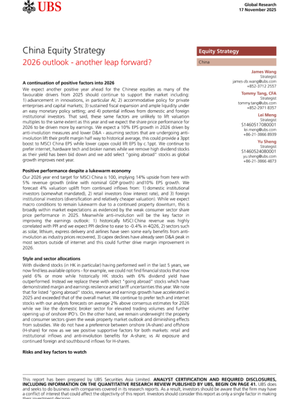 【UBS】【202511】China Equity Strategy2026 outlook- another leap forward?-47页 证券期货研究报告