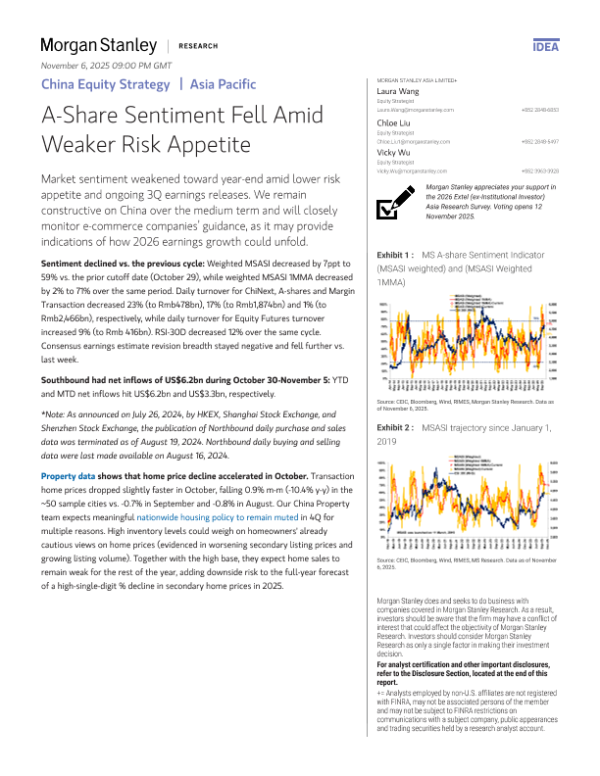 【Morgan Stanley】【2025】China Equity Strategy A-Share Sentiment Fell Amid Weaker Risk Appetite-13页 证券期货研究报告