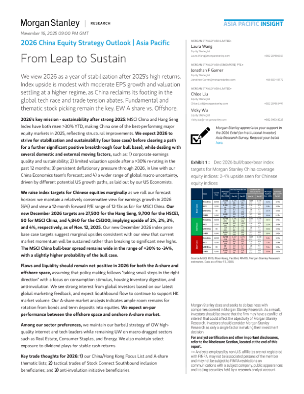 【MORGAN STANLEY ASIA LIMITED&MORGAN STANLEY ASIA (SINGAPORE) PTE.】【2025】2026 China Equity Strategy Outlook | Asia Pacific From Leap to Sustain-37页 证券期货研究报告
