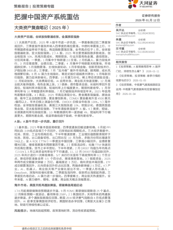 【天风证券】【202601】大类资产复盘笔记(2025年):把握中国资产系统重估-25页 证券期货研究报告