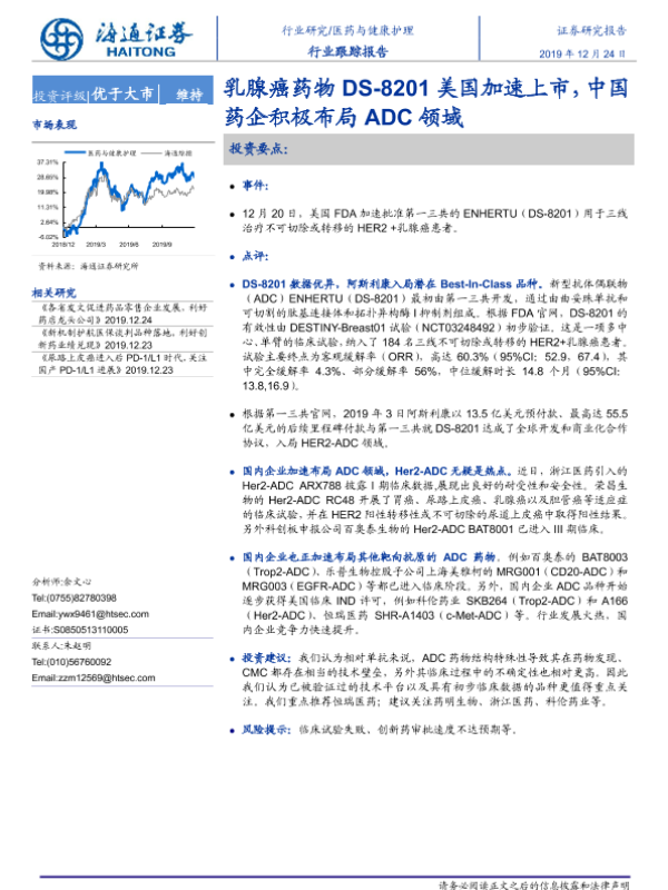 【海通证券】【20191224】乳腺癌药物DS-8201美国加速上市,中国药企积极布局ADC领域-2页 行业研究