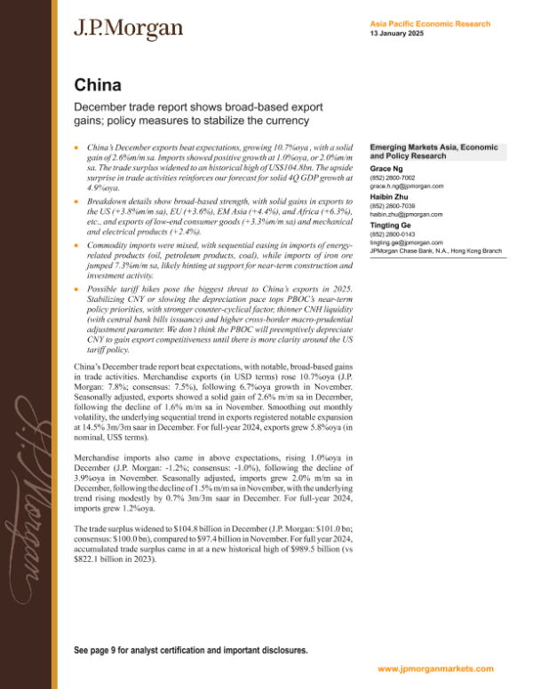 【J.P. Morgan】【20250113】FI-China December trade report shows broad-based export gains-13页 行业研究