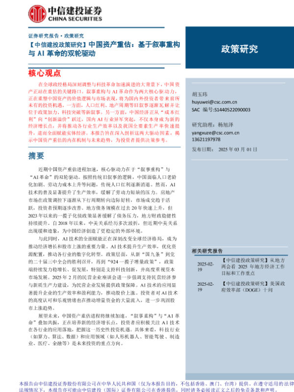 【中信建投证券】【202503】中国资产重估:基于叙事重构与AI革命的双轮驱动-22页 行业研究