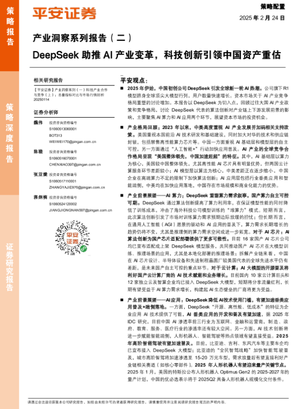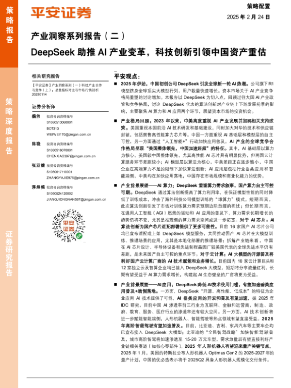 【平安证券】【20250224】产业洞察系列报告(二):DeepSeek助推AI产业变革,科技创新引领中国资产重估-24页 行业研究