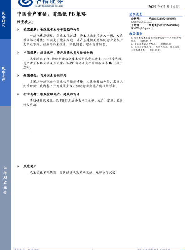 【华福证券】【20250714】策略点评:中国资产重估,首选低PB策略-11页 宏观策略