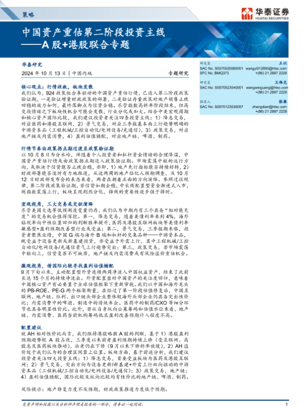【华泰证券】【20241013】A股+港股联合专题:中国资产重估第二阶段投资主线-25页 宏观策略