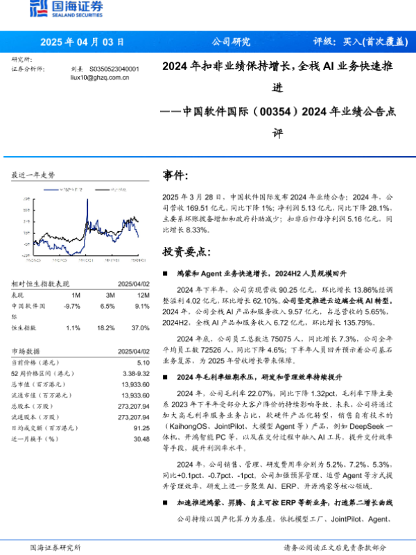 【国海证券】【20250403】2024年业绩公告点评:2024年扣非业绩保持增长,全栈AI业务快速推进-10页 公司研究