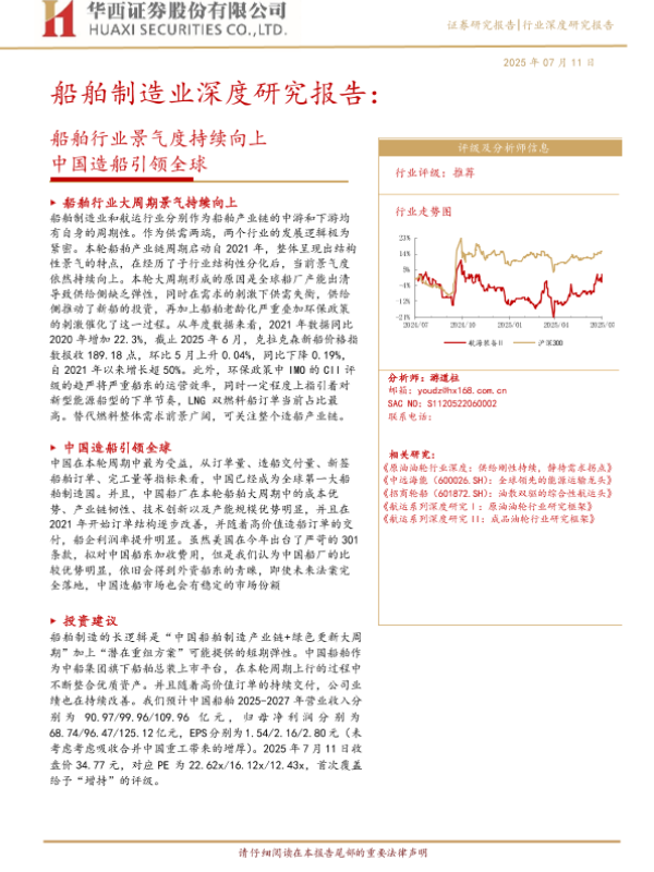 【华西证券】【20250711】船舶制造行业深度研究报告:船舶行业景气度持续向上,中国造船引领全球-37页 行业研究