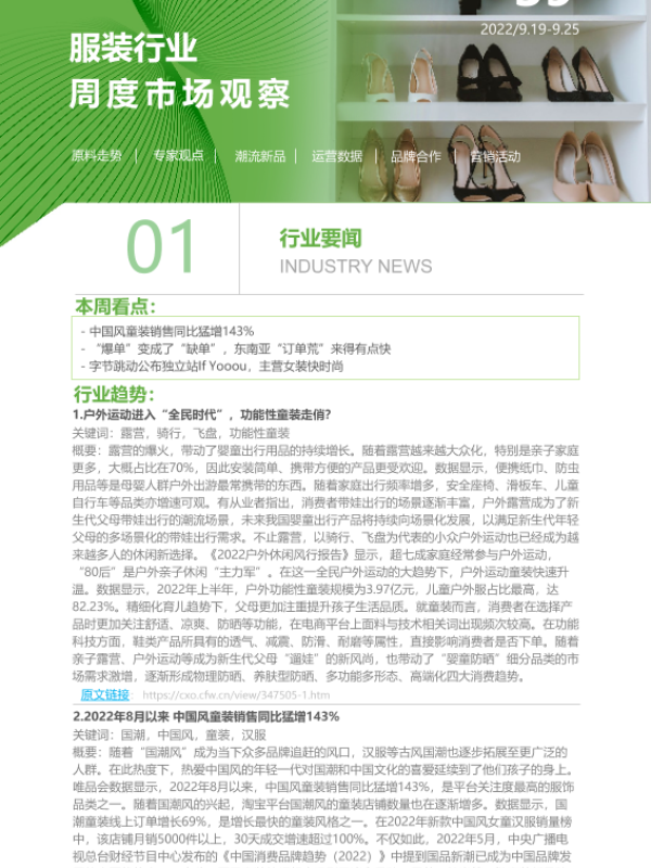 【艾瑞咨询】【202209】2022年第39周:服装行业周度市场观察-8页 市场调研