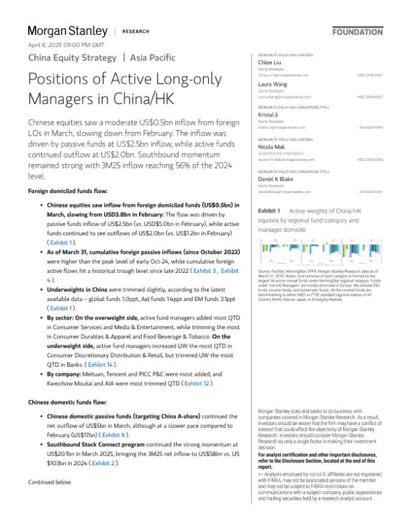 【Morgan Stanley】【202503】China Equity Strategy Positions of Active Long-only Managers-17页 证券期货研究报告