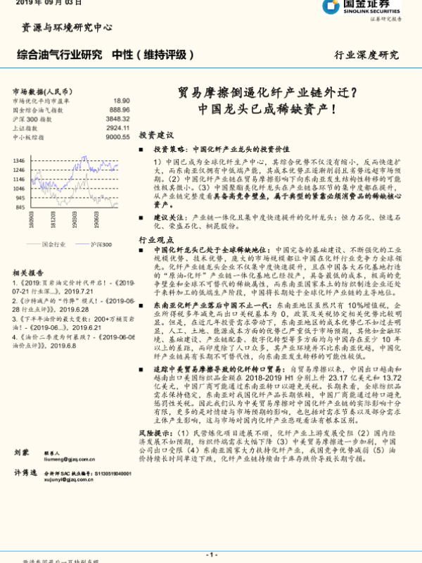 【国金证券】【20190903】20190903-国金证券-综合油气行业深度研究:贸易摩擦倒逼化纤产业链外迁?中国龙头已成稀缺资产!-30页 行业研究