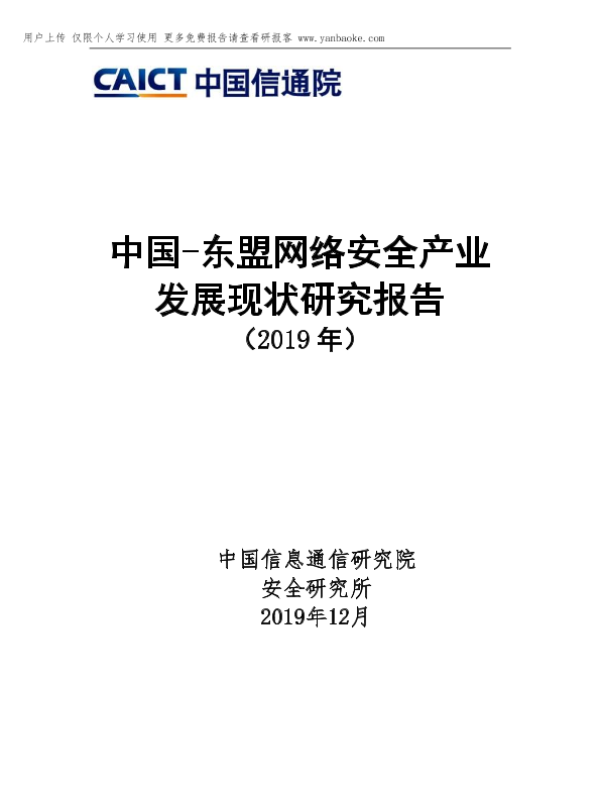【中国信息通信研究院】【201912】中国-东盟网络安全产业发展现状研究报告-29页 行业研究