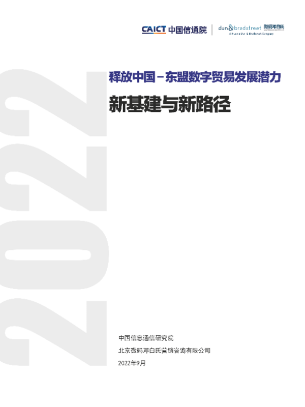 【中国信息通信研究院】【2022】释放中国-东盟数字贸易发展潜力:新基建与新路径-61页 行业研究