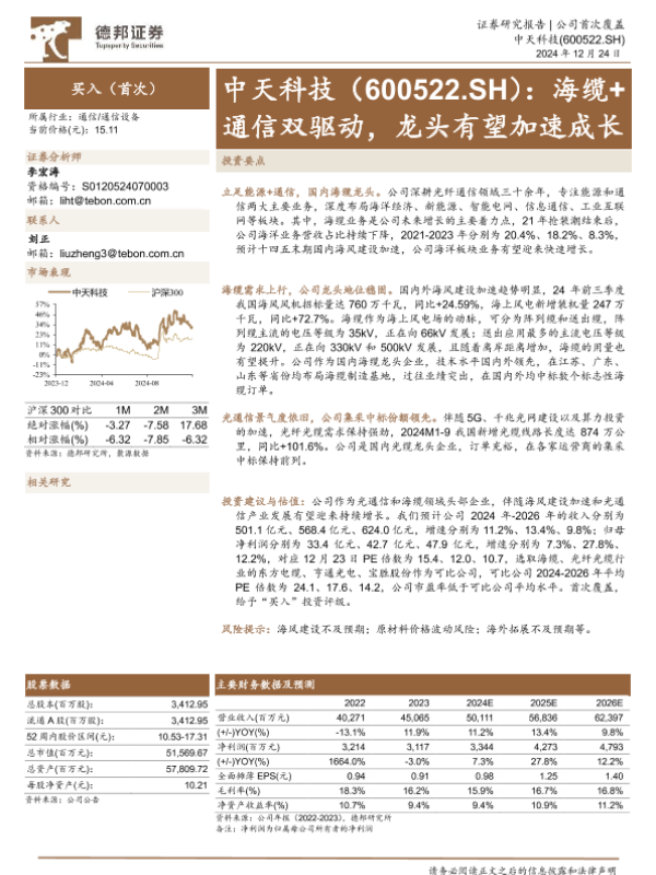 【德邦证券】【20241224】中天科技:海缆+通信双驱动,龙头有望加速成长-28页 行业研究