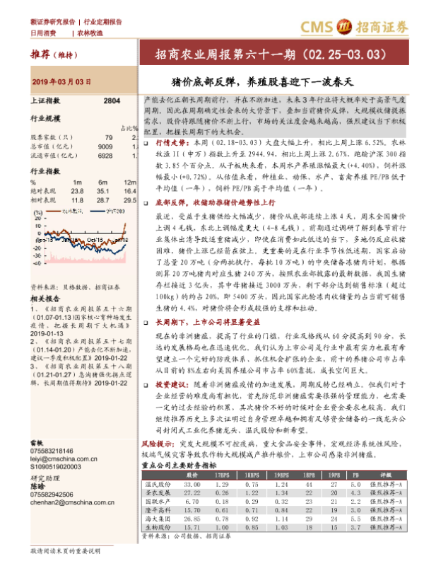 【海通证券】【20190303】招商农业周报第六十一期:猪价底部反弹,养殖股喜迎下一波春天-25页 行业研究
