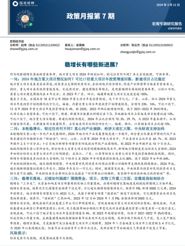 【国金证券】【20240311】政策月报第7期:稳增长有哪些新进展?-16页 宏观策略