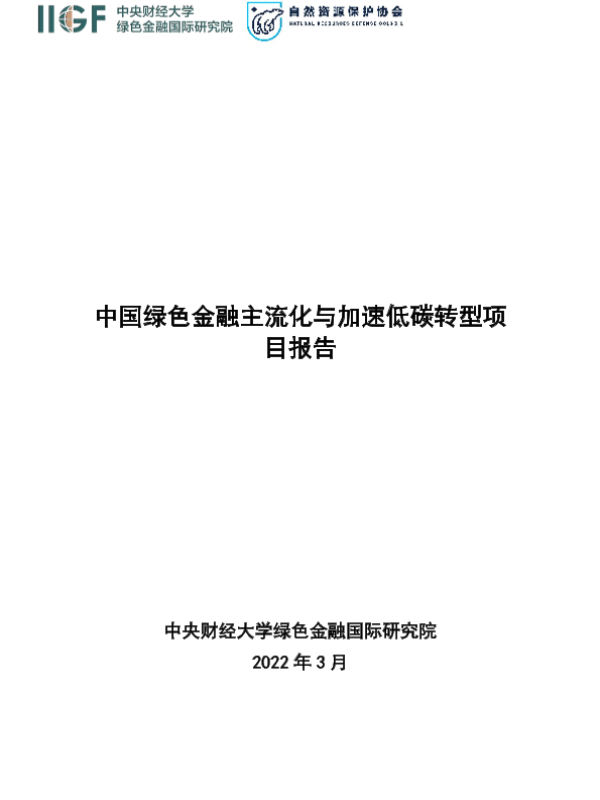 【中央财经大学绿色金融国际研究院】【2022】中国绿色金融主流化与加速低碳转型项目报告-23页 行业研究