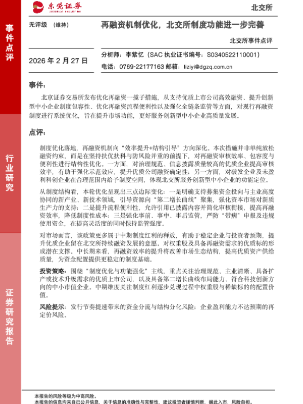 【东莞证券】【202602】北交所事件点评:再融资机制优化,北交所制度功能进一步完善-2页 证券期货研究报告