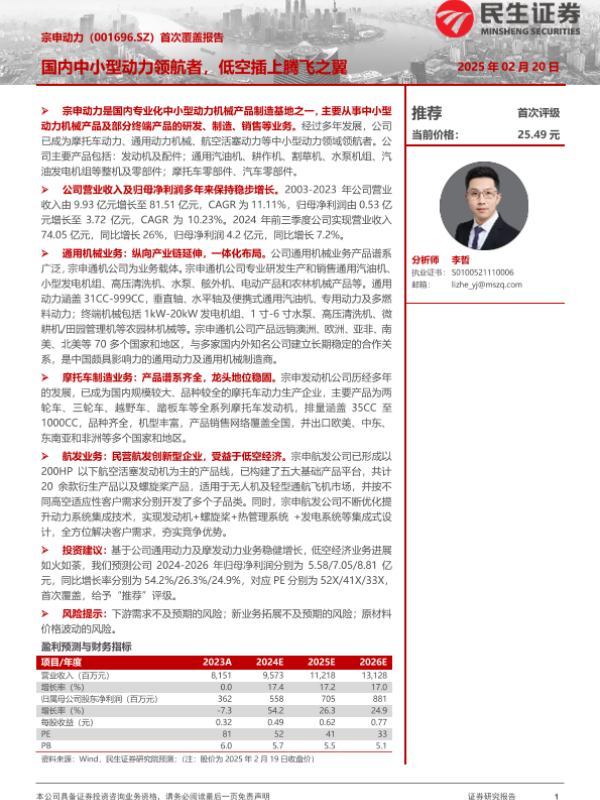 【民生证券】【20250220】20250220-民生证券-宗申动力-001696.SZ-首次覆盖报告:国内中小型动力领航者,低空插上腾飞之翼-35页 行业研究