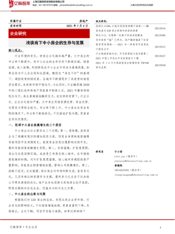 【亿翰智库】【20210702】浅谈当下中小房企的生存与发展-11页 行业研究