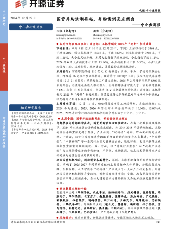 【开源证券】【20241229】2024年12月29日更新-【开源证券】中小盘周报国资并购浪潮再起,并购案例亮点频出-41页 行业研究