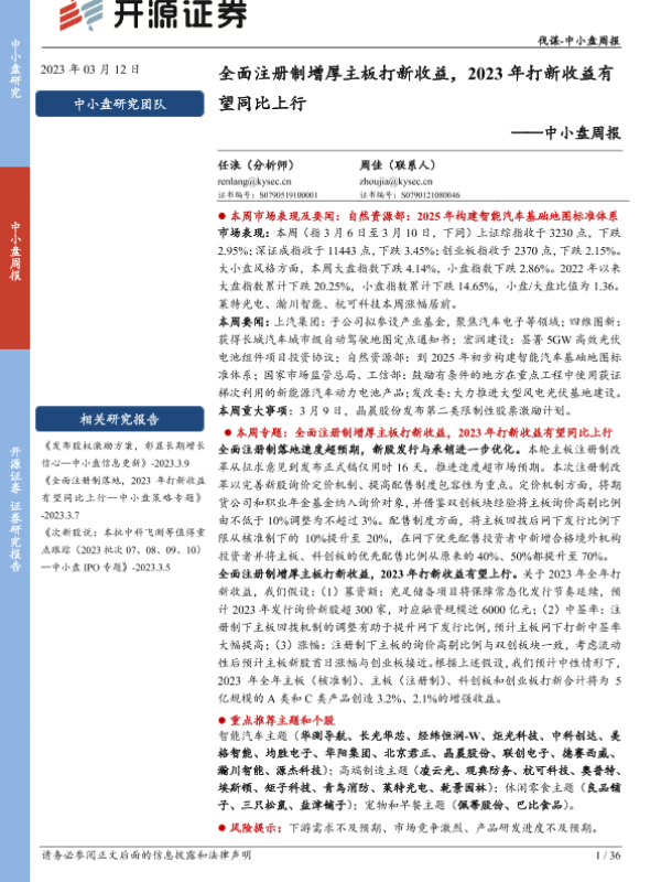 【开源证券】【20230312】中小盘周报:全面注册制增厚主板打新收益,2023年打新收益有望同比上行-36页 行业研究