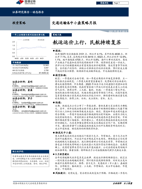 【国信证券】【20210505】交通运输&中小盘策略月报:航运运价上行,民航持续复苏-25页 行业研究