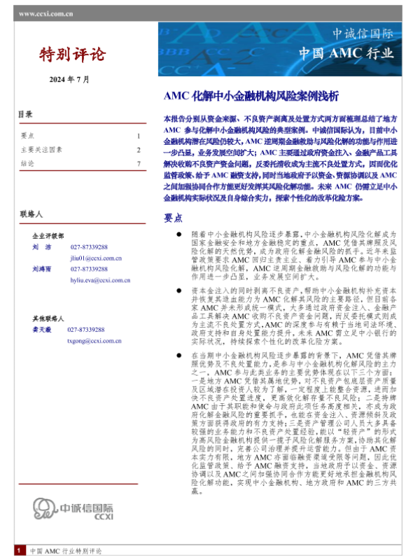 【中诚信国际】【202407】AMC化解中小金融机构风险浅析-9页 行业研究