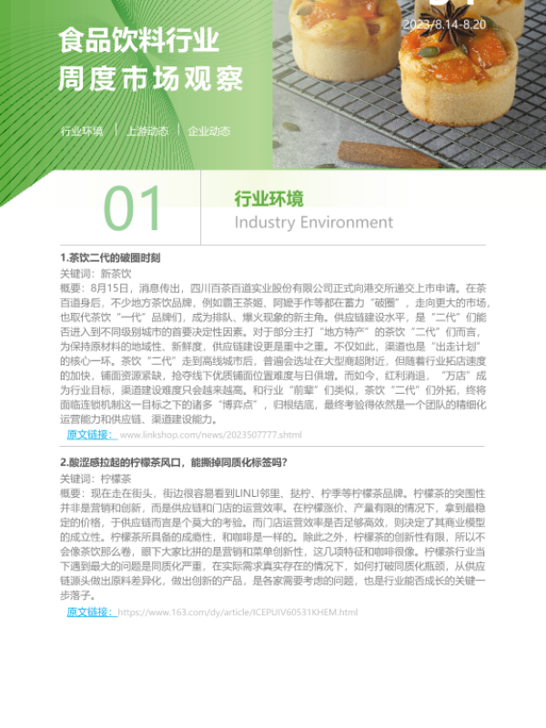【艾瑞咨询】【20230820】2023年第34周:食品饮料行业周度市场观察-6页 市场调研