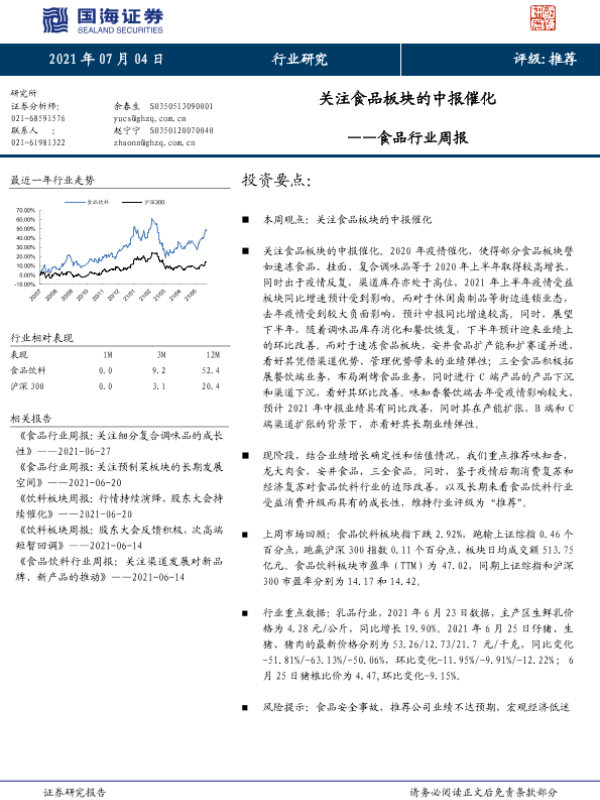 【国海证券】【20210704】食品行业周报:关注食品板块的中报催化-16页 行业研究