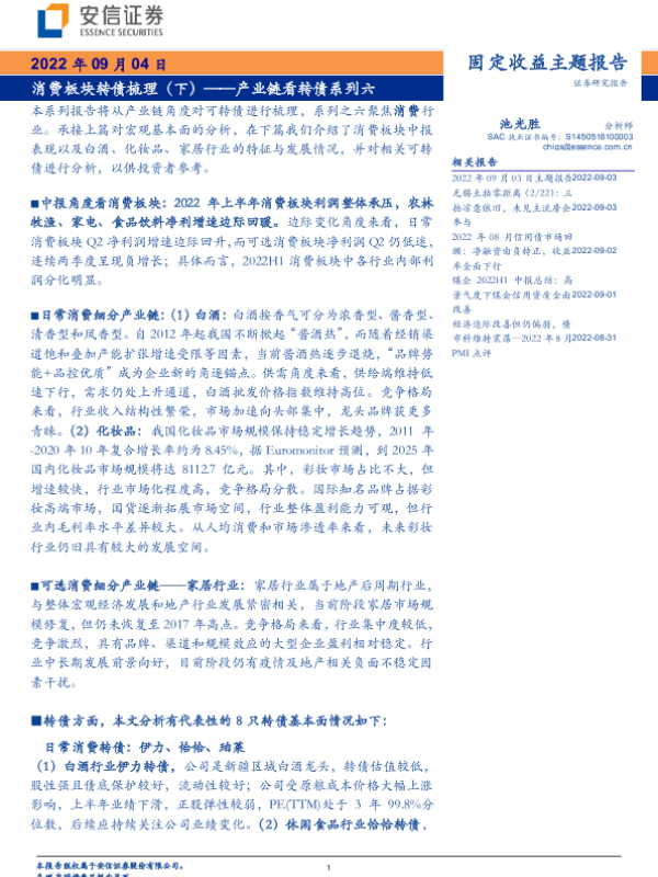 【安信证券】【20220904】产业链看转债系列六:消费板块转债梳理(下)-27页 行业研究
