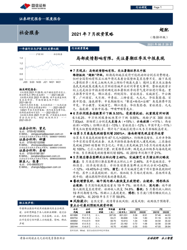 【国信证券】【20210629】2021年7月投资策略:局部疫情影响有限,关注暑期旺季及中报表现-16页 行业研究