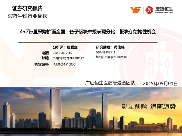 【广证恒生】【20190901】医药生物行业周报:4+7带量采购扩面全国,各子版块中报表现分化,板块存结构性机会-22页 行业研究