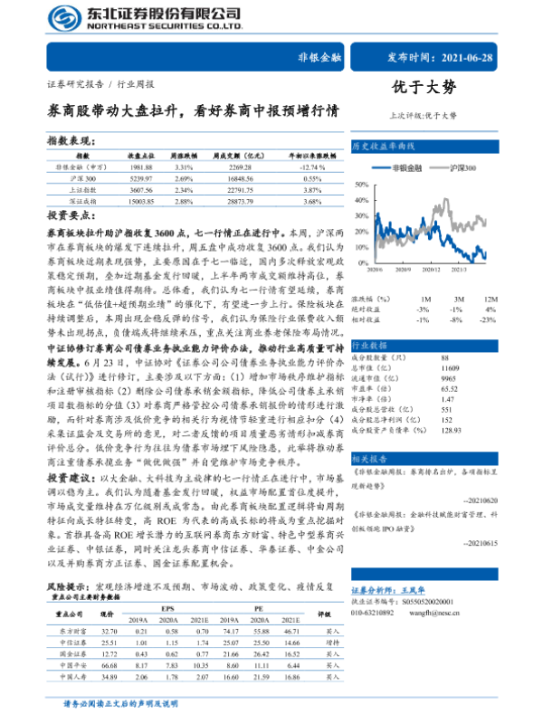 【东北证券】【20210628】券商股带动大盘拉升,看好券商中报预增行情-21页 行业研究
