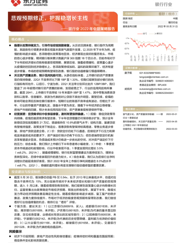 【东方证券】【20220531】银行业2022年中期策略报告:悲观预期修正,把握稳增长主线-34页 行业研究