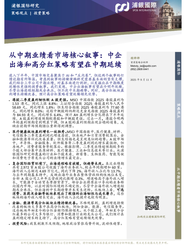 【浦银国际】【202509】从中期业绩看市场核心叙事:中企出海和高分红策略有望在中期延续-16页 证券期货研究报告