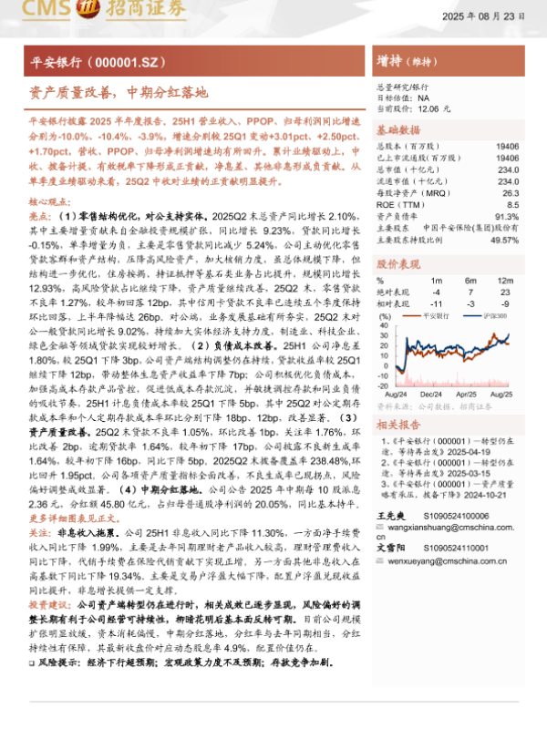 【海通证券】【202508】平安银行(000001)资产质量改善,中期分红落地-19页 证券期货研究报告