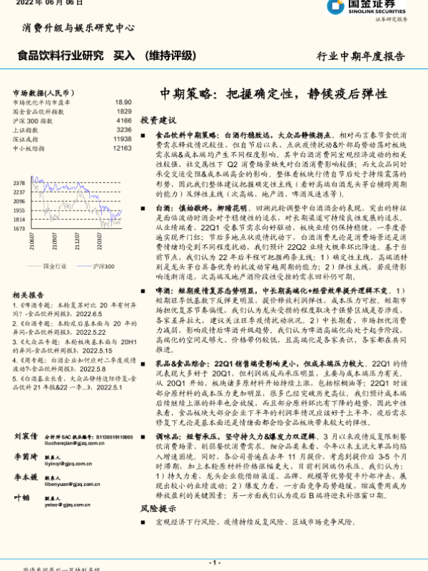 【国金证券】【20220606】20220606-国金证券-食品饮料行业中期策略:把握确定性,静候疫后弹性-31页 行业研究
