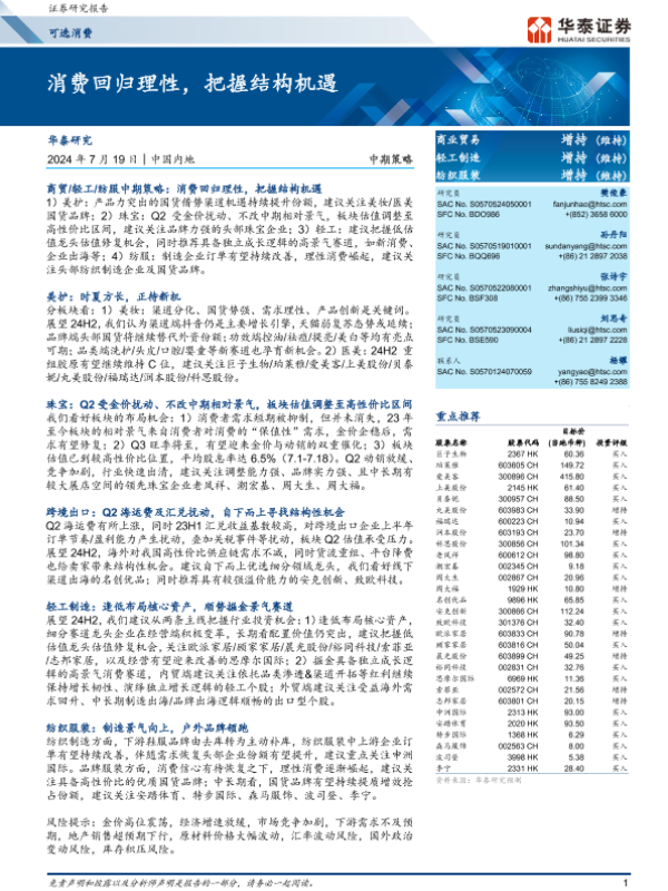 【华泰证券】【20240719】可选消费中期策略:消费回归理性,把握结构机遇-55页 行业研究