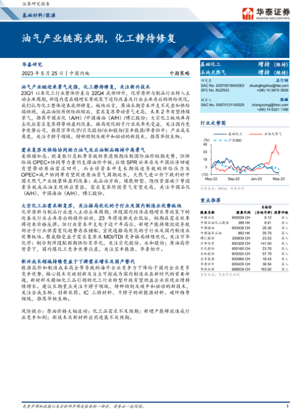 【华泰证券】【20230525】基础材料 能源中期策略:油气产业链高光期,化工静待修复-27页 行业研究