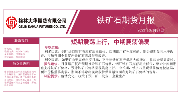 【格林大华期货】【20220731】铁矿石期货月报:短期震荡上行,中期震荡偏弱-21页 行业研究