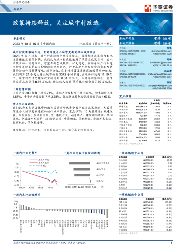 【华泰证券】【20231015】房地产行业周报(第四十一周):政策持续释放,关注城中村改造-27页 行业研究