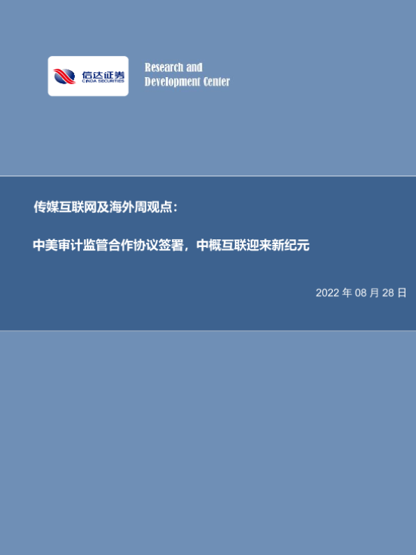 【信达证券】【20220828】中美审计监管合作协议签署,中概互联迎来新纪元-25页 行业研究