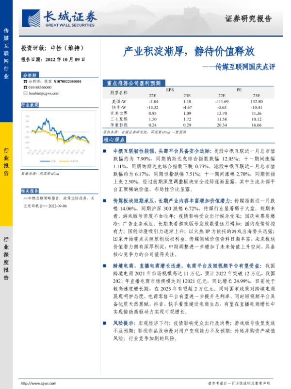 【长城证券】【20221009】产业积淀渐厚,静待价值释放-11页 行业研究